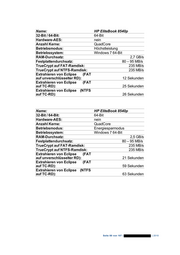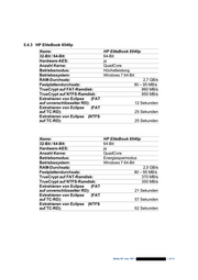 5.4.3 HP EliteBook 8540p Name: HP EliteBook 8540p 32-Bit / 64-Bit: 64-Bit Hardware-AES: ja Anzahl Kerne: QuadCore Betriebsmodus: Höchstleistung Betriebssystem: Windows 7 64-Bit RAM-Durchsatz: 2,7 GB/s Festplattendurchsatz: 80 – 95 MB/s TrueCrypt auf FAT-Ramdisk: 860 MB/s TrueCrypt auf NTFS-Ramdisk: 850 MB/s Extrahieren von Eclipse (FAT auf unverschlüsselter RD): 12 Sekunden Extrahieren von Eclipse (FAT auf TC-RD): 25 Sekunden Extrahieren von Eclipse (NTFS auf TC-RD): 25 Sekunden Name: HP EliteBook 8540p 32-Bit / 64-Bit: 64-Bit Hardware-AES: ja Anzahl Kerne: QuadCore Betriebsmodus: Energiesparmodus Betriebssystem: Windows 7 64-Bit RAM-Durchsatz: 2,5 GB/s Festplattendurchsatz: 80 – 95 MB/s TrueCrypt auf FAT-Ramdisk: 370 MB/s TrueCrypt auf NTFS-Ramdisk: 350 MB/s Extrahieren von Eclipse (FAT auf unverschlüsselter RD): 21 Sekunden Extrahieren von Eclipse (FAT auf TC-RD): 57 Sekunden Extrahieren von Eclipse (NTFS auf TC-RD): 62 Sekunden Seite 87 von 107 | | 2010