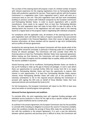 The co-chairs of the steering board will propose a team of a limited number of experts with relevant experience for the ongoing negotiations from six Participating Member States with production capacities for vaccines. These experts will join with the European Commission in a negotiation team (“joint negotiation team”), which will work on a continuous basis as one unit. That joint negotiation team will start work immediately building on previous contacts with individual companies by the European Commission and Participating Member States. In order to launch negotiations with a specific manufacturer, there needs to be support from at least four Participating Member States. The joint negotiation team will make its best effort to take the advice of the steering board into account in the negotiations and will report back to the steering board on a regular basis on the progress made in negotiating with individual companies. For compliance with the applicable rules, all members of the steering board and the joint negotiation team will obtain the status of experts associated to the procurement process as provided in the Financial Regulation. Given their access to highly sensitive business information, all those members will be required to sign strict confidentiality and no-conflict-of-interest agreements. Assisted by the steering board, the European Commission will then decide which of the resulting APAs should be concluded, in particular if financing under ESI is insufficient to finance all relevant packages. The Commission will only consider those APAs for financing where at least four Participation Member States have expressed agreement. Before making any final decisions, the Commission will seek independent scientific advice on the state of progress and the available data on quality, safety and efficacy for the vaccine candidate in question. Should financing under ESI be insufficient, Participating Member States can decide to top up ESI funding to make up the gap to finance all packages. In such a case where there are opportunities to conclude further APAs but money from ESI is no longer sufficient, Participating Member States will have the opportunity to express their interest in such opportunities. If at least four Participating Member States express interest, those Participating Member States will make use of the possibility of a voluntary contribution to ESI to the required amount allowing the Commission to proceed with signing the APA only on behalf of those Member States that have expressed interest and contributed the funds to ESI. For full transparency, the European Commission will report to the IPCR at least once every two weeks on overall progress more generally. Advanced Purchase Agreements and conditions To conclude APAs, the joint negotiating team will negotiate funding packages with individual vaccine producers in return for the right to buy a specific number of vaccine doses in a given timeframe and at a certain price. As outlined in the present Agreement, the European Commission also has the possibility to conclude APAs including an obligation to procure the vaccine if it becomes available, where the conditions (notably the pricing) of those APAs make this worthwhile and in line with the conditions in the present Agreement. If in such a case the distinction between upfront payments and purchase price is difficult to draw, the Commission will 4