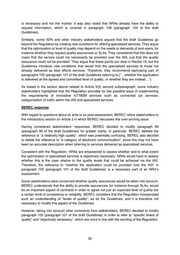 is necessary and not the market. It was also noted that NRAs already have the ability to request information, which is covered in paragraph 108 (paragraph 104 of the draft Guidelines). Similarly, some ISPs and other industry stakeholders argued that the draft Guidelines go beyond the Regulation by creating new conditions for offering specialised services. They argue that the optimisation or level of quality may depend on the needs or demands of end-users, for instance whether they request quality assurances or SLAs. They considered that this does not mean that the service could not necessarily be provided over the IAS, just that the quality assurance could not be provided. They argue that these points are clear in Recital 16, but the Guidelines introduce new conditions that would limit the specialised services to those not already delivered as best efforts services. Therefore, they recommend rephrasing part of paragraphs 105 (paragraph 101 of the draft Guidelines referring to (“…whether the application is delivered at the agreed and committed level of quality, or whether they are instead…”). As stated in the section above related to Article 3(3) second subparagraph, some industry stakeholders highlighted that the Regulation provides for two possible ways of implementing the requirements of innovative IoT/M2M services such as connected car services: categorisation of traffic within the IAS and specialised services. BEREC response With regard to questions about ex ante or ex post assessment, BEREC refers stakeholders to the introductory section on Article 3 in which BEREC discusses this over-arching issue. Having considered stakeholders’ responses, BEREC decided to modify paragraph 99 (paragraph 95 of the draft Guidelines) for greater clarity. In particular, BEREC deleted the reference to “a relatively high quality”, which was potentially confusing. BEREC also decided to delete the reference to “a category of electronic communication”, since this may not have been an accurate description when referring to services delivered as specialised services. Consistent with the Regulation, NRAs are empowered to assess whether and to what extent the optimisation of specialised services is objectively necessary. NRAs would have to assess whether this is the case relative to the quality levels that could be achieved via the IAS. Therefore, the reference to “whether the application could be provided over the IAS” in paragraph 105 (paragraph 101 of the draft Guidelines) is a necessary part of an NRA’s assessment. Some stakeholders were concerned whether quality assurances would be taken into account. BEREC understands that the ability to provide assurances, for instance through SLAs, would be an important aspect of contracts in order to agree not just an expected level of quality but a certain level of consistency or reliability. BEREC considers that the Regulation incorporated such an understanding of “levels of quality”, as do the Guidelines, and it is therefore not necessary to modify this aspect of the Guidelines. However, taking into account other comments from stakeholders, BEREC decided to modify paragraph 105 (paragraph 101 of the draft Guidelines) in order to refer to “specific levels of quality” and “objectively necessary”, which are more in line with the wording of the Regulation. 30