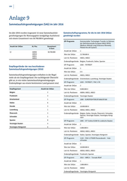 108 Anlage 9 Sammelausfuhrgenehmigungen (SAG) im Jahr 2016 Im Jahr 2016 wurden insgesamt 12 neue Sammelausfuhr Gemeinschaftsprogramme, für die im Jahr 2016 SAGen genehmigungen für Rüstungsgüter (endgültige Ausfuhren) genehmigt wurden mit einem Gesamtwert von 58.700.000 € genehmigt. GP-Programm Kommerzieller Technologie-Transfer im Rahmen der Definitionsstudie European MALE RPAS (Medium Altitude Long Endurance Remotely Anzahl der SAGen AL-Pos. Gesamtwert Piloted Aircraft System) in Euro Anzahl der SAGen 1 12 A0004 58.700.000 A0010 Wert der SAGen 22.700.000 € A0021 A0022 Leit-AL-Positionen A0021, A0022 Endempfängerländer Belgien, Frankreich, Italien, Spanien GP-Programm 1030 – PATRIOT Empfängerländer der neu beschiedenen Anzahl der SAGen 1 Sammelausfuhrgenehmigungen (2016) Wert der SAGen 0€ Sammelausfuhrgenehmigungen enthalten in der Regel Leit-AL-Positionen A0021, A0022 mehr als ein Empfängerland. Die nachfolgende Übersicht Endempfängerländer Griechenland, Luxemburg, Vereinigte Staaten gibt an, in wie vielen Sammelausfuhrgenehmigungen GP-Programm 1039 – PATRIOT / PAC 3 FK Endempfänger aus einem bestimmten Land genannt sind. Anzahl der SAGen 2 Empfängerland Anzahl der SAGen Wert der SAGen 9.000.000 € Belgien 2 Leit-AL-Positionen A0004, A0021, A0022 Frankreich 3 Endempfängerländer Vereinigte Staaten Griechenland 1 GP-Programm 1090 - EUROFIGHTER/EF2000/EF200 Italien 6 Anzahl der SAGen 3 Kanada 3 Wert der SAGen 10.000.000 € Luxemburg 1 Leit-AL-Positionen A0010, A0021, A0022 Österreich 3 Endempfängerländer Belgien, Italien, Kanada, Österreich, Schweden, Spanien, Vereinigte Staaten, Vereinigtes König- Schweden 1 reich Spanien 8 GP-Programm 1095 – EF Turbine EJ200 für arabische Staaten Vereinigte Staaten 4 Anzahl der SAGen 2 Vereinigtes Königreich 6 Wert der SAGen 5.000.000 € Leit-AL-Positionen A0010, A0021, A0022 Endempfängerländer Italien, Spanien, Vereinigtes Königreich GP-Programm 1120 – PAH-2/TIGER Panzerabwehr - Hub- schrauber Anzahl der SAGen 2 Wert der SAGen 10.000.000 € Leit-AL-Positionen A0010, A0021, A0022 Endempfängerländer Frankreich, Spanien GP-Programm 3014 – MRCA – Tornado RSAF Anzahl der SAGen 1 Wert der SAGen 2.000.000 € Leit-AL-Positionen A0010 Endempfängerländer Vereinigtes Königreich