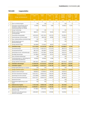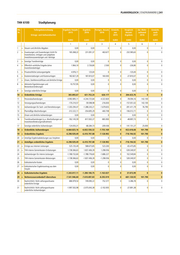 246 | JAHRESABSCHLUSS 2016 | PLANVERGLEICH THH 6200 Liegenschaften 11 Innere Verwaltung lfd. Teilergebnisrechnung Ergebnis Vorjahr Ergebnis Fortges. Ansatz Ermächt. Vergleich Zul. Mehr- Ermächt. Nr. 2015 2016 2016 aus Ansatz/ aufwand nach Ertrags- und Aufwandsarten 2015 Ergebnis 2016 2017 EURO EURO EURO EURO EURO EURO EURO 1 2 3 4 5 6 7 2 + Zuweisungen und Zuwendungen (nicht für 2,01 1,20 2 0 0,60 0 0 Investitionen), Umlagen und aufgelöste Investitionszuwendungen und -beiträge 4 + Öffentlich-rechtliche Entgelte (ohne 73.752,30 79.112,50 40.000 0 -39.112,50 0 0 Investitionsbeiträge) 5 + Privatrechtliche Leistungsentgelte 3.605.762,11 3.920.094,54 3.360.000 0 -560.094,54 0 0 6 + Kostenerstattungen und Kostenumlagen 0,00 4.884,28 0 0 -4.884,28 0 0 8 + Aktivierte Eigenleistungen und 11.986,85 0,00 0 0 0,00 0 0 Bestandsveränderungen 9 + Sonstige ordentliche Erträge 454.350,48 74.605,06 0 0 -74.605,06 0 0 10 = Ordentliche Erträge 4.145.853,75 4.078.697,58 3.400.002 0 -678.695,78 0 0 11 - Personalaufwendungen -2.650.622,52 -2.830.660,02 -2.830.210 0 450,02 -133.200 0 12 - Versorgungsaufwendungen -209.427,66 -73.652,16 -200.880 0 -127.227,84 133.200 0 13 - Aufwendungen für Sach- und Dienstleistungen -744.264,70 -502.196,67 -560.759 0 -58.562,49 0 0 14 - Planmäßige Abschreibungen -71.446,01 -81.577,13 -56.929 0 24.648,06 0 0 16 - Transferaufwendungen (u.a. Abschreibungen auf 0,00 -200,00 -200 0 0,00 0 0 Investitionsförderungsmaßnahmen) 17 - Sonstige ordentliche Aufwendungen -1.549.795,42 -1.861.153,62 -63.560 0 1.797.594,06 -1.282.660 0 18 = Ordentliche Aufwendungen -5.225.556,31 -5.349.439,60 -3.712.538 0 1.636.901,81 -1.282.660 0 19 = Ordentliches Ergebnis -1.079.702,56 -1.270.742,02 -312.536 0 958.206,03 -1.282.660 0 21 = Anteiliges ordentliches Ergebnis -1.079.702,56 -1.270.742,02 -312.536 0 958.206,03 -1.282.660 0 22 + Erträge aus internen Leistungen 575.720,20 847.818,28 724.620 0 -123.198,28 0 0 23 + THH-interne Gemeinkosten-Entlastungen 4.058.233,01 4.132.879,30 4.066.833 0 -66.046,29 0 0 24 - Aufwendungen für interne Leistungen -875.819,90 -217.177,92 -689.642 0 -472.464,35 0 0 25 - THH-interne Gemeinkosten-Belastungen -4.806.968,99 -4.712.365,75 -4.394.105 0 318.260,66 0 0 28 = Kalkulatorisches Ergebnis -1.048.835,68 51.153,91 -292.294 0 -343.448,26 0 0 29 = Nettoressourcenbedarf/-überschuss -2.128.538,24 -1.219.588,11 -604.830 0 614.757,77 -1.282.660 0 30 Nachrichtlich: Nicht zahlungswirksame 587.709,06 847.819,48 724.622 0 -123.197,68 0 0 ordentliche Erträge 31 Nachrichtlich: Nicht zahlungswirksame -956.415,77 -308.221,06 -748.071 0 -439.850,28 0 0 ordentliche Aufwendungen
