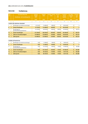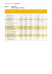 248 | JAHRESABSCHLUSS 2016 | PLANVERGLEICH THH 6200 Liegenschaften 51 Räumliche Planung und Entwicklung lfd. Teilergebnisrechnung Ergebnis Vorjahr Ergebnis Fortges. Ansatz Ermächt. Vergleich Zul. Mehr- Ermächt. Nr. 2015 2016 2016 aus Ansatz/ aufwand nach Ertrags- und Aufwandsarten 2015 Ergebnis 2016 2017 EURO EURO EURO EURO EURO EURO EURO 1 2 3 4 5 6 7 4 + Öffentlich-rechtliche Entgelte (ohne 410.166,07 390.467,69 350.000 0 -40.467,69 0 0 Investitionsbeiträge) 5 + Privatrechtliche Leistungsentgelte 383.754,36 450.018,84 353.350 0 -96.668,84 0 0 9 + Sonstige ordentliche Erträge 60.314,51 10.370,77 286.000 0 275.629,23 0 0 10 = Ordentliche Erträge 854.234,94 850.857,30 989.350 0 138.492,70 0 0 11 - Personalaufwendungen -3.953.717,58 -4.318.765,22 -4.201.700 0 117.065,22 -316.510 0 12 - Versorgungsaufwendungen -419.320,77 -140.889,40 -473.460 0 -332.570,60 316.510 0 13 - Aufwendungen für Sach- und Dienstleistungen -329.293,73 -337.537,65 -455.864 0 -118.325,87 0 0 14 - Planmäßige Abschreibungen -117.379,56 -127.834,20 -147.504 0 -19.669,68 0 0 17 - Sonstige ordentliche Aufwendungen -807.655,38 -169.031,30 -566.353 0 -397.321,66 0 0 18 = Ordentliche Aufwendungen -5.627.367,02 -5.094.057,77 -5.844.880 0 -750.822,59 0 0 19 = Ordentliches Ergebnis -4.773.132,08 -4.243.200,47 -4.855.530 0 -612.329,89 0 0 21 = Anteiliges ordentliches Ergebnis -4.773.132,08 -4.243.200,47 -4.855.530 0 -612.329,89 0 0 22 + Erträge aus internen Leistungen 270.814,10 162.658,05 149.570 0 -13.088,05 0 0 23 + THH-interne Gemeinkosten-Entlastungen 5.951.055,85 6.132.544,18 6.219.644 0 87.099,95 0 0 24 - Aufwendungen für interne Leistungen -733.158,96 -1.058.201,07 -847.083 0 211.118,53 0 0 25 - THH-interne Gemeinkosten-Belastungen -6.150.833,91 -6.290.153,32 -6.620.441 0 -330.287,34 0 0 28 = Kalkulatorisches Ergebnis -662.122,92 -1.053.152,16 -1.098.309 0 -45.156,91 0 0 29 = Nettoressourcenbedarf/-überschuss -5.435.255,00 -5.296.352,63 -5.953.839 0 -657.486,80 0 0 30 Nachrichtlich: Nicht zahlungswirksame 270.814,10 162.658,05 149.570 0 -13.088,05 0 0 ordentliche Erträge 31 Nachrichtlich: Nicht zahlungswirksame -850.538,52 -1.195.561,46 -994.586 0 200.975,04 0 0 ordentliche Aufwendungen
