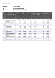 244 | Jahresabschluss 2018 THH6200 Liegenschaften 12 Sicherheit und Ordnung 1224 Kommunales Grundbuchwesen lfd. Teilergebnisrechnung Ergebnis Vorjahr Fortges. Ergebnis Vergleich Ergänz. Ermächt. Verfügbare Mittel Ermächt. Nr. Ansatz Ergebnis/ Festlegung im aus abzgl. Ergebnis nach Ertrags- und Aufwandsarten Ansatz HH-Vollzug 2017 2018 2018 2018 2018 2017 2018 2019 EUR EUR EUR EUR EUR EUR EUR EUR 1 2 3 4 5 6 7 8 5 + Entgelte für öffentliche Leistungen oder 399,24 0,00 0,00 0,00 0 0 0,00 0 Einrichtungen 6 + Privatrechtliche Leistungsentgelte 0,00 0,00 1.260,00 1.260,00 0 0 -1.260,00 0 7 + Kostenerstattungen und Kostenumlagen 10.700,00 14.000,00 7.160,00 -6.840,00 0 0 6.840,00 0 11 = Anteilige ordentliche Erträge 11.099,24 14.000,00 8.420,00 -5.580,00 0 0 5.580,00 0 12 - Personalaufwendungen 0,00 -301,51 0,00 301,51 0 0 -301,51 0 13 - Versorgungsaufwendungen 0,00 -20,70 0,00 20,70 0 0 -20,70 0 15 - Planmäßige Abschreibungen -4.458,96 -6.486,45 -5.513,37 973,08 0 0 -973,08 0 18 - Sonstige ordentliche Aufwendungen -73,65 0,00 -55,10 -55,10 0 0 55,10 0 19 = Anteilige ordentliche -4.532,61 -6.808,66 -5.568,47 1.240,19 0 0 -1.240,19 0 Aufwendungen 20 = Anteiliges ordentliches Ergebnis 6.566,63 7.191,34 2.851,53 -4.339,81 0 0 4.339,81 0 23 - Aufwendungen für interne Leistungen -20.099,70 -17.548,60 -23.046,26 -5.497,66 0 0 5.497,66 0 (Belastungen) 24 - THH-interne Gemeinkosten-Belastungen -154.332,27 -157.436,28 -158.990,17 -1.553,89 0 0 1.553,89 0 26 = Kalkulatorisches Ergebnis -174.431,97 -174.984,88 -182.036,43 -7.051,55 0 0 7.051,55 0 27 = Nettoressourcenbedarf/- -167.865,34 -167.793,54 -179.184,90 -11.391,36 0 0 11.391,36 0 überschüsse
