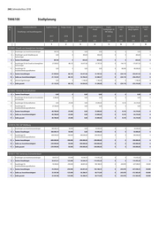 238 | Jahresabschluss 2018 THH6100 Stadtplanung lfd. Teilergebnisrechnung Ergebnis Vorjahr Fortges. Ergebnis Vergleich Ergänz. Ermächt. Verfügbare Mittel Ermächt. Nr. Ansatz Ergebnis/ Festlegung im aus abzgl. Ergebnis nach Ertrags- und Aufwandsarten Ansatz HH-Vollzug 2017 2018 2018 2018 2018 2017 2018 2019 EUR EUR EUR EUR EUR EUR EUR EUR 1 2 3 4 5 6 7 8 1 + Steuern und ähnliche Abgaben 0,00 0,00 0,00 0,00 0 0 0,00 0 2 + Zuweisungen und Zuwendungen, 16.977,09 78.760,00 45.132,12 -33.627,88 0 0 33.627,88 0 Umlagen 3 + Aufgelöste Investitionszuwendungen und 187.352,48 246.580,00 218.284,00 -28.296,00 0 0 28.296,00 0 -beiträge 4 + Sonstige Transfererträge 0,00 0,00 0,00 0,00 0 0 0,00 0 5 + Entgelte für öffentliche Leistungen oder 3.561,10 8.500,00 3.985,00 -4.515,00 0 0 4.515,00 0 Einrichtungen 6 + Privatrechtliche Leistungsentgelte 789,50 0,00 15.446,40 15.446,40 0 0 -15.446,40 0 7 + Kostenerstattungen und Kostenumlagen 245.842,61 177.600,00 220.498,35 42.898,35 0 0 -42.898,35 0 8 + Zinsen und ähnliche Erträge 0,00 0,00 0,00 0,00 0 0 0,00 0 9 + Aktivierte Eigenleistungen und 0,00 0,00 1.160,49 1.160,49 0 0 -1.160,49 0 Bestandsveränderungen 10 + Sonstige ordentliche Erträge 0,00 0,00 0,00 0,00 0 0 0,00 0 11 = Anteilige ordentliche Erträge 454.522,78 511.440,00 504.506,36 -6.933,64 0 0 6.933,64 0 12 - Personalaufwendungen -4.319.637,69 -4.524.200,00 -4.519.027,92 5.172,08 0 0 -5.172,08 0 13 - Versorgungsaufwendungen -52.594,50 -65.000,00 -3.630,95 61.369,05 0 0 -61.369,05 0 14 - Aufwendungen für Sach- und -1.066.331,84 -1.206.838,00 -1.028.070,15 178.767,85 221.478 0 42.710,15 0 Dienstleistungen 15 - Planmäßige Abschreibungen -386.364,40 -547.257,00 -429.157,33 118.099,67 0 0 -118.099,67 0 16 - Zinsen und ähnliche Aufwendungen 0,00 0,00 -278,59 -278,59 -280 0 -1,41 0 17 - Transferaufwendungen -830.251,87 -949.775,00 -955.645,37 -5.870,37 -5.880 0 -9,63 0 18 - Sonstige ordentliche Aufwendungen -106.292,58 -168.452,00 -125.737,51 42.714,49 0 0 -42.714,49 0 19 = Anteilige ordentliche -6.761.472,88 -7.461.522,00 -7.061.547,82 399.974,18 215.318 0 -184.656,18 0 Aufwendungen 20 = Anteiliges ordentliches Ergebnis -6.306.950,10 -6.950.082,00 -6.557.041,46 393.040,54 215.318 0 -177.722,54 0 21 + Erträge aus internen Leistungen 567.914,69 580.150,00 653.186,88 73.036,88 0 0 -73.036,88 0 (Entlastungen) 22 + THH-interne Gemeinkosten-Entlastungen 1.856.034,68 2.066.778,64 1.804.063,16 -262.715,48 0 0 262.715,48 0 23 - Aufwendungen für interne Leistungen -1.796.846,58 -1.805.294,62 -1.827.884,28 -22.589,66 0 0 22.589,66 0 (Belastungen) 24 - THH-interne Gemeinkosten-Belastungen -1.856.034,68 -2.066.778,64 -1.804.063,16 262.715,48 0 0 -262.715,48 0 25 + Kalkulatorische Kosten 0,00 0,00 0,00 0,00 0 0 0,00 0 26 = Kalkulatorisches Ergebnis -1.228.931,89 -1.225.144,62 -1.174.697,40 50.447,22 0 0 -50.447,22 0 27 = Nettoressourcenbedarf/- -7.535.881,99 -8.175.226,62 -7.731.738,86 443.487,76 215.318 0 -228.169,76 0 überschüsse