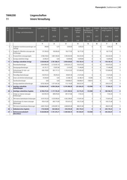 Planvergleich | Stadtkämmerei | 243 THH6200 Liegenschaften 11 Innere Verwaltung lfd. Teilergebnisrechnung Ergebnis Vorjahr Fortges. Ergebnis Vergleich Ergänz. Ermächt. Verfügbare Mittel Ermächt. Nr. Ansatz Ergebnis/ Festlegung im aus abzgl. Ergebnis nach Ertrags- und Aufwandsarten Ansatz HH-Vollzug 2017 2018 2018 2018 2018 2017 2018 2019 EUR EUR EUR EUR EUR EUR EUR EUR 1 2 3 4 5 6 7 8 3 + Aufgelöste Investitionszuwendungen und 399,90 0,75 3.050,95 3.050,20 0 0 -3.050,20 0 -beiträge 5 + Entgelte für öffentliche Leistungen oder 137.294,50 100.000,00 156.777,00 56.777,00 0 0 -56.777,00 0 Einrichtungen 6 + Privatrechtliche Leistungsentgelte 3.768.278,02 3.681.500,00 3.785.932,94 104.432,94 0 0 -104.432,94 0 10 + Sonstige ordentliche Erträge 22.093,47 0,00 13.878,96 13.878,96 0 0 -13.878,96 0 11 = Anteilige ordentliche Erträge 3.928.065,89 3.781.500,75 3.959.639,85 178.139,10 0 0 -178.139,10 0 12 - Personalaufwendungen -3.064.890,09 -3.153.937,19 -3.050.261,27 103.675,92 0 0 -103.675,92 0 13 - Versorgungsaufwendungen -81.251,71 -73.857,84 -2.410,95 71.446,89 0 0 -71.446,89 0 14 - Aufwendungen für Sach- und -606.159,82 -581.717,12 -1.155.412,02 -573.694,90 0 0 573.694,90 0 Dienstleistungen 15 - Planmäßige Abschreibungen -104.974,25 -78.076,53 -99.691,59 -21.615,06 0 0 21.615,06 0 16 - Zinsen und ähnliche Aufwendungen -16.500,00 0,00 -32.386,70 -32.386,70 -15.090 0 17.296,70 0 17 - Transferaufwendungen 0,00 0,00 -138.808,47 -138.808,47 -138.810 0 -1,53 0 18 - Sonstige ordentliche Aufwendungen -8.762.565,94 -1.071.647,36 -712.119,39 359.527,97 0 0 -359.527,97 0 19 = Anteilige ordentliche -12.636.341,81 -4.959.236,04 -5.191.090,39 -231.854,35 -153.900 0 77.954,35 0 Aufwendungen 20 = Anteiliges ordentliches Ergebnis -8.708.275,92 -1.177.735,29 -1.231.450,54 -53.715,25 -153.900 0 -100.184,75 0 21 + Erträge aus internen Leistungen 632.935,76 699.070,00 691.517,66 -7.552,34 0 0 7.552,34 0 (Entlastungen) 22 + THH-interne Gemeinkosten-Entlastungen 4.419.105,39 4.535.900,64 4.362.299,04 -173.601,60 0 0 173.601,60 0 23 - Aufwendungen für interne Leistungen -950.413,85 -843.713,90 -703.441,42 140.272,48 0 0 -140.272,48 0 (Belastungen) 24 - THH-interne Gemeinkosten-Belastungen -4.820.156,28 -4.954.897,16 -4.668.845,48 286.051,68 0 0 -286.051,68 0 26 = Kalkulatorisches Ergebnis -718.528,98 -563.640,42 -318.470,20 245.170,22 0 0 -245.170,22 0 27 = Nettoressourcenbedarf/- -9.426.804,90 -1.741.375,71 -1.549.920,74 191.454,97 -153.900 0 -345.354,97 0 überschüsse