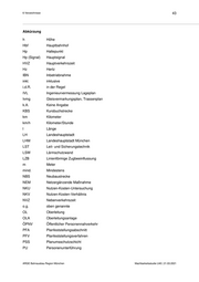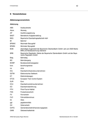 6 Verzeichnisse 43 Abkürzung h Höhe Hbf Hauptbahnhof Hp Haltepunkt Hp (Signal) Hauptsignal HVZ Hauptverkehrszeit Hz Hertz IBN Inbetriebnahme inkl. inklusive i.d.R. in der Regel IVL Ingenieurvermessung Lageplan Ivmg Gleisvermarkungsplan, Trassenplan k.A. Keine Angabe KBS Kursbuchstrecke km Kilometer km/h Kilometer/Stunde l Länge LH Landeshauptstadt LHM Landeshauptstadt München LST Leit- und Sicherungstechnik LSW Lärmschutzwand LZB Linienförmige Zugbeeinflussung m Meter mind. Mindestens NBS Neubaustrecke NEM Netzergänzende Maßnahme NKU Nutzen-Kosten-Untersuchung NKV Nutzen-Kosten-Verhältnis NVZ Nebenverkehrszeit o.g. oben genannte OL Oberleitung OLA Oberleitungsanlage ÖPNV Öffentlicher Personennahverkehr PFA Planfeststellungsabschnitt PFV Planfeststellungsverfahren PSS Planumsschutzschicht PU Personenunterführung ARGE Bahnausbau Region München Machbarkeitsstudie U40 | 21.03.2021