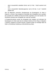 - denen voraussichtlich subsidiärer Schutz nach § 4 Abs. 1 AsylG zuerkannt wird oder - denen voraussichtlich Abschiebungsschutz nach § 60 Abs. 5 und 7 AufenthG gewährt wird, über die Möglichkeit unterrichtet, Dienstleistungen der Bundesagentur für Arbeit in Anspruch zu nehmen. Dazu übergibt der Entscheider dem Antragsteller einen Laufzettel. Der Laufzettel wird in MARiS als Dokument D1643 vorgehalten und ist dort abrufbar. Der Dolmetscher übersetzt dem Antragsteller den Inhalt des Laufzettels. In Gruppeninformationen werden die Antragsteller über Aufgaben und Leistungen der Bundesagentur für Arbeit sowie über die nächsten Schritte auf ihrem Weg zur Integration in Sprache, Ausbildung und Arbeit informiert. Zusätzlich werden auf freiwilliger Basis die Daten zu Schulbildung, Ausbildung und Berufserfahrung erfasst. Anhörung 26/25 Stand 04/21
