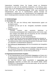 Bezüglich der Teilnahme von Personen an der Anhörung wird auf das Kapitel Anhörungen Punkt 7 in der DA-Asyl verwiesen. Einem Bevollmächtigten, einem eigenen Dolmetscher oder einem Beistand ist es erlaubt, im selben Raum wie die Antragsteller an der Anhörung teilzunehmen. Andere Personen, sowie Vertreter des UNHCR, des Bundes oder des Landes können im selben Raum wie der Anhörer teilnehmen. Eine Videoanhörung unter Verwendung von Videokonferenztechnik setzt kein Einverständnis des Antragstellers voraus. 1.1. Ablauf der Videoanhörung mittels Videokonferenztechnik Die Identifizierung des zur Anhörung erschienenen Antragstellers wird zu Beginn der Anhörung mittels Abgleich mit der vorgelegten Aufenthaltsgestattung durchgeführt. Im Rahmen der Anhörung erfolgt unter Überprüfung der in MARiS aktuell erfassten ED-Daten und erfolgter Registerabgleiche ein Datenabgleich der im Rahmen der Antragstellung erfassten Daten. Die Identifizierung des Antragstellers mittels Aufenthaltsgestattung erfolgt entweder durch den Entscheider in Begleitung des Dolmetschers– analog der persönlichen Anhörung/Befragung. Der Antragsteller wird anschließend in die Räumlichkeiten zur Anhörung mittels Videokonferenztechnik begleitet. Alternativ ist gesondertes Personal einzusetzen, das im Fall von Videoanhörungen die Koordination übernimmt. Dieses Koordinationspersonal nimmt den Antragsteller im Empfang, gleicht die Personalien ab und begleitet den Antragsteller in die entsprechenden Räumlichkeiten. Zu Beginn der Anhörung erfolgt eine Aufklärung des Antragstellers zum Ablauf einer Anhörung mittels Videokonferenztechnik. Es ist deutlich darauf hinzuweisen, dass keinerlei Nachteile aus dieser Art der Anhörung entstehen und die Bild- und Tonübertragung nicht über das Internet, sondern über die gesicherte Infrastruktur des Bundesamtes erfolgt. Dieser Hinweis ist zusammen mit einem Hinweis auf die Vertraulichkeit der Anhörung in die Niederschrift aufzunehmen. In der Niederschrift ist zudem zu vermerken, welche Beteiligten sich in einem Raum befinden bzw. zugeschaltet werden. Beim Auftreten unvorhersehbarer, nicht kurzfristig lösbarer Probleme (insbesondere Ton- oder Bildausfall) ist die Anhörung mittels Videokonferenztechnik abzubrechen und dies im Protokoll zu vermerken. Befinden sich alle Beteiligten in einer Dienststelle des Bundesamtes kann nach dem Abbruch der Anhörung mittels Videokonferenztechnik, die Anhörung wahlweise als Präsenzanhörung fortgeführt werden oder eine Neuladung erfolgen. 1.2. Technische und räumliche Voraussetzungen Bereits bei der Planung einer Anhörung per Videokonferenztechnik ist insbesondere darauf zu achten, dass alle beteiligten Personen – insbesondere aber Anhörer, Antragsteller und Dolmetscher – einen guten Sichtkontakt zueinander haben bzw. alle Beteiligten eine Bild- und Tonübertragung der jeweils anderen Beteiligten wahrnehmen Video-Anhörung währ. COVID 19 2/6 Stand 10/21
