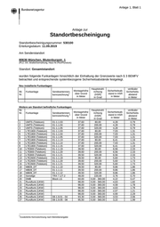Anlage 1, Blatt 2 Die Emissionen der in der Standortbescheinigung berücksichtigten Sendeantennen sowie die von umliegenden ortsfesten Funkanlagen herrührenden relevanten Immissionen wurden bei der Festlegung des einzuhaltenden standortbezogenen Sicherheitsabstandes bzw. der einzuhaltenden Sicherheitsabstände (diese sind auf dem Deckblatt dieser Standortbescheinigung angegeben) berücksichtigt. Bundesnetzagentur Außenstelle Augsburg Diese Standortbescheinigung wurde maschinell erstellt und ist ohne Unterschrift gültig