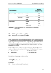 Bewertungsverfahren BVWP 2003 Teil III B: Ergänzungen Straße Mittlere Verkehrszweig Gesamtkosten ct je Pkm bzw. Tkm Personenverkehr Fernverkehr Schiene 18,6 Straße 22,3 Nahverkehr Schiene 33,4 Straße 35,1 Güterverkehr Schiene 4,2 Straße 13,9 Wasserstraße bis 4 ct Abbildung 77: Mittlere Beförderungs- bzw. Transportkosten je Verkehrsträger (Stand 1998) 2.2 Erhaltung der Verkehrswege (NW) 2.2.1 Erneuerung der Verkehrswege (NW1) Infolge der Realisierung eines Straßenprojektes können unter Umständen notwendi- ge Aufwendungen zur Erneuerung bestehender Straßen oder Bauwerke entbehrlich werden. Ersparnisse können darüber hinaus durch auf einen späteren Zeitpunkt ver- schiebbare Erneuerungskosten an einer anderen Stelle im Straßennetz erreicht wer- den. Diese Einsparungen werden projektspezifisch angegeben und mit der Nutzen- komponente NW1 erfasst. Die bei der Berechnung der Erneuerungskosten in Ansatz gebrachten Kostensätze wurden in [16] recherchiert und auf den Preisstand 1998 aktualisiert. Sie betragen: • Bundesautobahn: 105.000 €/km und Jahr • Bundesstraße: 27.100 €/km und Jahr Die möglichen Einsparungen werden berechnet: NW 1 = ∑ KE( SK ) × l( SK ) × an SK Es bedeuten: KE Kosten der Erhaltung [€/km und Jahr] 177