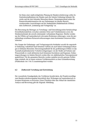 Bewertungsverfahren BVWP 2003 Teil I: Grundlagen der Methodik Im Sinne einer stadtverträglichen Planung der Bundesverkehrswege sollen In- frastrukturmaßnahmen des Bundes auch der lokalen Entlastung bebauter Be- reiche und der dort lebenden Menschen dienen. Dementsprechend ordnet die Raumwirksamkeitsanalyse die aus Entlastungen im lokalen Bereich resultierenden Auswirkungen auf die Stadtqualität (Städtebauliche Effekte) dem Zielbereich „Entlastung und Verlagerung“ zu. Die Bewertung des Beitrages zu Verteilungs- und Entwicklungszielen berücksichtigt Erreichbarkeitsdefizite zwischen zentralen Orten und Verkehrsknoten sowie die Strukturmerkmale der jeweils miteinander verbundenen Regionen. Hierbei werden nur die Effekte auf raumordnerisch relevanten Relationen einbezogen, wenn die pro- jektbedingt erzielbaren Reisezeitverbesserungen einen bestimmten Grenzwert über- schreiten. Die Gruppe der Entlastungs- und Verlagerungsziele beinhaltet sowohl die angestreb- te Entlastung verkehrlich hoch belasteter Gebiete als auch lokale Entlastungswirkun- gen in bebauten Bereichen. Bewertungsmaßstab für die großräumigen Effekte ist das Ausmaß projektinduzierter Verkehrsverlagerungen von der Straße auf Schiene und Wasserstraße in vorab definierten hoch belasteten Korridoren und Regionen. Entlas- tungswirkungen im lokalen Bereich werden über ein städtebauliches Nutzenpotenzial quantifiziert. Für die genannten Bereiche werden zunächst jeweils getrennt Zielbei- träge ermittelt, die in einem weiteren Verfahrensschritt zu einer Gesamtbewertung (Punkteskala von 1 bis 5) zusammengefasst werden. 6.2 Zielbereich Verteilung und Entwicklung Der wesentliche Grundgedanke des Verfahrens besteht darin, die Projektvorschläge zum Bundesverkehrswegeplan hinsichtlich ihrer Wirkungen auf raumordnerisch re- levanten Relationen zu bewerten. Einen Überblick über den Ablauf der räumlichen Analyse und Bewertung gibt die folgende Abbildung. 53
