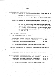 2.2.1 2.2.2 3. Abständ der Feuerreihen VASIS 16 und 23 (2-BAR-VASIS) VASIS 16: Abstand der vorderen Feuerreihe zur Schwelle Abstand der hinteren Feuerreihe zur Schwelle 240 m 450m Die Abstände entsprechen damit den VASIS-Richtlinien. VASIS 23; Abstand der vorderen Feuerreihe zur Schwelle Abstand der hinteren Feuerreihe zur Schwelle 210 m 420 m Die von den VASIS-Richtlinien abweichenden Abstände ergeben sich aufgrund der versetzten Schwelle 23 und der Lage des Startbahnkreuzes; sie entsprechen jedoch den Aufstellungstoleranzen des TCRO"Anhang 14 (Text zur Abb, 5 - 13). : Abstand der Halbreihen und Einzelfeuer VASIS 16 und: 23 40m Abstand der inneren Feuer zur S/L-Bahnmittellinie = ' Abstand der inneren Fzuer zum s/L-Bahnrand = 17m Abstand der Fenarkästen untereinander = 5m 2.2.4 Die Abstände entsprechen damit den VASIS-Richtlinien. Evtl, Korrekturen bei längs- und quergeneigter Bahn VASIS 16 und 23 Korrekturen waren bei beiden VASIS nicht erforderlich. Abstand der Feuerreihen VASIS 34 (3-BAR-VASIS) Abstand der vorderen Feuerreihe zur Schwelle = 240 m Abstand der mittleren Feuerreihe zur Schwelle = 450 m = 660 m Abstand der hinteren Feuerreihe zur Schwelle Die Abstände entsprechen damit den VASIS-Richtlinien.