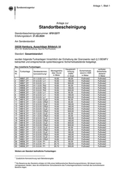 Standortbescheinigung Zum Nachweis der Gewährleistung des Schutzes von Personen in den durch den Betrieb von ortsfesten Funkanlagen entstehenden elektromagnetischen Feldern. Nach den der Bundesnetzagentur vorgelegten Antragsdaten wurde der Standort: STOB-Nr: 87012377 20539 Hamburg, Ausschläger Billdeich 18 (PLZ, Ort, Straße/Gemarkung, Haus Nr./Flur/Flurstück) nach den Regelungen der Verordnung über das Nachweisverfahren zur Begrenzung elektromagnetischer Felder (BEMFV) auf der Grundlage des § 32 des Gesetzes über die Bereitstellung von Funkanlagen auf dem Markt vom 27. Juni 2017 (BGBl. I 2017 S. 1947) bewertet und diese Bescheinigung erteilt. Die Bewertung des Standortes (Standort im Sinne der BEMFV) erfolgte unter der Berücksichtigung aller am Standort installierten ortsfesten Funkanlagen (Anlage 1) sowie der am Standort bereits vorhandenen relevanten Feldstärken, die von umliegenden ortsfesten Funkanlagen ausgehen auf der Basis der Grenzwerte nach § 3 der BEMFV. Bewertungsmethode: Die Erteilung der Standortbescheinigung erfolgte auf der Grundlage eines feldtheoretischen Verfahrens zur Bewertung des Personenschutzes. Die Anforderungen der Verordnung über das Nachweisverfahren zur Begrenzung elektromagnetischer Felder (BEMFV) werden an diesem Funkanlagenstandort eingehalten. Besonderer Hinweis Der Standort darf auch mit den der Standortbescheinigung Nr. 87012377 vom 18.06.2018 zugrundeliegenden Standortdaten betrieben werden. Für diesen Betriebszustand gelten der/die standortbezogene/n Sicherheitsabstand/-abstände aus der vorstehend genannten Bescheinigung, die hier als Anlage beigefügt ist. Die darin enthaltenen Festlegungen zum standortbezogenen Sicherheitsabstand/zu den standortbezogenen Sicherheitsabständen und die in der dortigen Anlage 1 ausgewiesenen systembezogenen Sicherheitsabstände für die dort aufgeführten Funkanlagen werden insoweit Bestandteil dieser Standortbescheinigung.