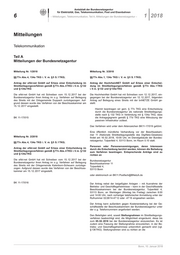 10 – Mitteilungen, Telekommunikation, Teil A, Mitteilungen der Bundesnetzagentur – 1 2018
