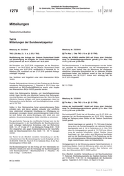 1280 – Mitteilungen, Telekommunikation, Teil A, Mitteilungen der Bundesnetzagentur – 15 2018