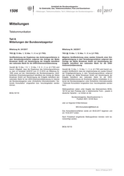 1508 – Mitteilungen, Telekommunikation, Teil A, Mitteilungen der Bundesnetzagentur – 03 2017