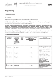 Die Amtsblattverfügung 85/2011 „Allgemeinzuteilung von Frequenzen medizinische Funkanwendungen“, veröf-