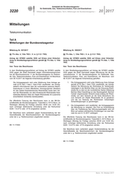 20 2017 – Mitteilungen, Telekommunikation, Teil A, Mitteilungen der Bundesnetzagentur – 3221