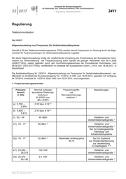 3418 – Mitteilungen, Telekommunikation, Teil A, Mitteilungen der Bundesnetzagentur – 22 2017