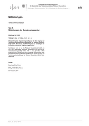 106 – Mitteilungen, Telekommunikation, Teil A, Mitteilungen der Bundesnetzagentur – 2 2016