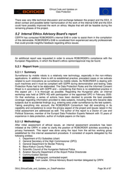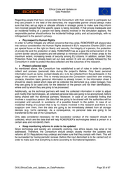 Ethical Code and Updates on Co): W NEE Any other GDPR Na } es a) person in the area Own ei GDPRArt. 6. es 0) crew Consortium Contracted experts ROBORDER crew Figure 1. Visualization of legal grounds and data subjects 5.2.1.5 Additional communication measures In order to minimalize accidental findings (record video on third persons), local residents will be informed about the planned demonstration in advance by using local media channels and the ORFK website, just like it would be in case of a sporting event, Head of State visit, movie shooting or other events which may result in increased surveillance activity. As the location of the demonstration is not yet decided and in the current pandemic situation the date cannot be determined for sure either, it is not possible to start a communication on this right now. 5.2.1.6 Collaboration with the Independent Ethics Advisor Under these circumstances, personal meetings are not feasible, therefore collaboration is facilitated via sharing documents. In case discussion is needed, a teleconference will be put up, however so far this was not necessary. 5.2.1.7 Conclusion This partial EAB report presented an example how the EAB contributes in case of end-users to deal with ethical issues, especially related to field demonstrations. The initial assessment showed some gaps which needed small updates, but no major corrections, but those gaps were closed, for example by implementing an additional WP, WP9. Taking everything into account, tne ROBORDER Consortium had did everything in its capability and competence to cover the privacy aspects of the project and issues raised in the initial assessment are addressed as well on both Consortium as well as individual partner level D8.6_EthicalCode_and_Updates_on_DataProtection Page 39 of 87