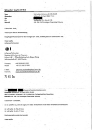 vielen Dank für die Rückmeldung. Beigefügten Kostenplan für die Anzeigen 1/5 Seite, Eckfeld gebe ich dann hiermit frei. Viele Grüße, Johannes Eschweiler ®! Johannes Eschweiler Bundesministerium der Finanzen Referat LB 3 | Öffentlichkeitsarbeit, Bürgerdialog Wilhelmstraße 97, 10117 Berlin Festnetz: +49 3018 6823331 Mabßil: +49 151 540.37 366 E-Mail: johannes,eschweiler@bmf.bund.de Internet: www.bundesfinanzministerium.de X 8 im vor: SE: of-communication,com> Gesendet: Mittwoch, 24. April 2024 09:48 An: Eschweiler, Johannes (LB 3) «Johannes. Eschweiler@brnf. bund.de> Betreff: AW: AW: FAZ-Anzeigen Finanzielle Bildung. Lieber Herr Eschweiler, es ist natürlich so, wie sie sagen, ich habe die Summen in der Mail versehentlich vertauscht: 2x 1/5-Seite: 39.760,49 Euro 2x 1/4-Seite: 55.021,77 Euro Die Kostenpläne sind also korrekt. Viele Grüße Von: Johannes. Eschweiler@bmf. bund.de «Johannes.Eschweiler@bmf. bund. de> Gesendet: Dienstag, 23. April 2024 13:51 Zr: EEE A s<- of-communication.com> Betreff: Aw: AW: FAZ-Anzeigen Finanzielle Bildung. - [External Email] Lie HEN