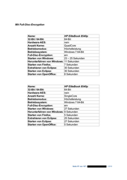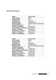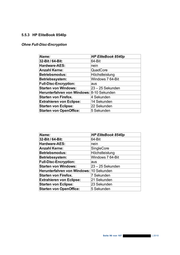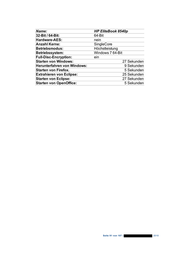 Name: 32-Bit / 64-Bit: Hardware-AES: Anzahl Kerne: Betriebsmodus: Betriebssystem: Full-Disc-Encryption: Starten von Windows: Herunterfahren von Windows: Starten von Firefox. Extrahieren von Eclipse: Starten von Eclipse: Starten von OpenOffice: HP EliteBook 8540p 64-Bit nein SingleCore Höchstleistung Windows 7 64-Bit ein 27 Sekunden 9 Sekunden 5 Sekunden 25 Sekunden 27 Sekunden 5 Sekunden Seite 91 von 107 | 2010