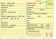 - r""'" _", Hundt Zuname Vornamen - JiJ/Ihrz.lm Krlegsgr. Liste Nr. Standesami Geburtsort Sarg Nr. .lJtZ. u f,s_ch Dienstgrad Web.r.mann J. R. gl-f Gesi./Gef. am ~6 1 '1.Q I 1_1-f- Todesursache nach Anschrift der Angehörigen Feuer Nr• 1/1. /ihren /"rt~dhor · Reihe Nr. }",- Exhumiert am von L tl.t~h~ I Bezirk ln belgesetzt als 19~ Grabbrief Nr. Grabtage: Beruf ~ priiE Sterbe-Reg. Nr. Geburtsdatum Nationalität i.! Grabzeichen : Kreuz Siele öffenll. gepflegtes Grab ja /~ Platte "" rrg ~', Bemerkungen: ~ J) ;(z hs ff7 /eh Ruhe rec hl se n lschä d lgung ·Lviucn 1 :. :JYL1959 vom Bund anerkonnt..... ((> ~ I s lJ4