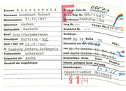 Z--un_a_m_e_B_o_u--r~s~c~h~e-i-d--~~M+I~-e-~-~~L-Is~~N~~-o-~-~-7=~-?~~037 Vornamen Leonhard Hubert Sf8r1i'i-Reg. Nr. 386/1942 Geburtsdatum 31 • 12. 1897 ·~ ndesamt Hamburg- 3a _G_e_b-urt_s_o_rt__A_a_c_h_e_n_ _ _ _ _ _ _ _ Sarg Nr. -- Feuer NrA-8 7 0/42 Nationalität deutsch Grabbrief Nr. --- Beruf Schiffszimmermann --~~~~~----------1 Grablagea _D_ie_n_st_g_ra_d_ -=-H=-=a=·f=-t....::...=l..::i:.::_n::.s.g"------U~,,.q.._!.._ _ __ Bezirk B p 7 4 Reihe 1 35 N r. 3 5 Gest. I Gef. am 24 . 07.1942 Exhumiert am ~. f;f;. ~J in Hamburg,Unters.Gefängnis Todesursache unbekannt vonn1 71 Reiße 52 NFa34~ nach Bt'74 Re ihe 35 Nr. 35 Grabzeichen: Kreuz Stele Platte beigesetzt als Asche Anschrift der Angehörigen ~ öffentl. geflegtes Grab ia:Xlt!!!t Bemerkungen: J1 ~ ; C/. ~ r~ Hauptfriedhof Ohlsdorf ]
