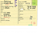 Zuname Po Vorname Fı Kriegsgr. Liste IP. he Sterb. Reg. Nr. Beruf fischler iR Standesamt 2073 8086 Grabbrief Nr, Dienstared Soldat. Inf. Reg‘. 4a Nr 10699 Nationalität Disch u Grabbezeichnung U 34 "046 Wohnort Sekt. Block Nr. Straße Überführt am : geb. am 4.3. 1893 F n _G@ufebon_ von Exhumiert am gest. am 26 9 1914 nach o i in Qiq 6 uro Denkzeichen ! a Todesursache Bundeszuschuß 'G beigesetzt als Leiche Bem. _ F in