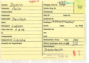 I -- - Name D 0 h r m a n n Berljn Vornamen Fri da KarQl i ne Gebu rtsdatum 19.1 2.9 6 Geburtsort Patte nse n Nationa lität dentscb Gest./Gef. am 7 .3 . 45 Ste rbeort Hambllrg Todesursoche Bombe nopfer Beruf Ehefr au Geburtsname Friedhof Barburg :mn Gräberliste N r. Sa rg /Feuer Nr. Grabbeze ichnung Grabzeichen : Kreuz - Stele - Platte jährl./ Abfi ndung RRE a b Exhum iert/Obe rführt am Angehörige: R~iedxiGb 780/4 5 - öffentlich gepflegtes Grab ab P Truppenteil Sterbereg ister Nr. B0 2QQ- 41i43 Grab lage von/nach 8 3 § 1I E h r e n an I a g e /~Xf..leJOX!IC~OC Dienstgrad Standesamt l"- JSI :1 892 (670) {!//elP ., Nauma.n:n l,e udc ic -c Für Verände rungen, Berichtigungen und Vermerke bitte Rückseite b e nutzen. L ' ~ t:P . f J, ~ .- 3 i J r_.. ~ - ~ -# /j;