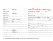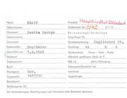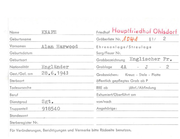 Name KNIGHT Geburtsname Vornamen Harold FriedhofHaupJfrie:dhof Obisdorf Gräberliste Nr. JIO lf-j §1I 2 Ehrenanlage/Streulage Gebu rtsdatum Sarg/Feuer Nr. Geburtsort Grabbezeichnung Nationalität Gest.!Gef. am Engländer 17 . 4 .1 942 Grablage Englischer Fr . 4A Grabzeichen: D Kreuz - Stele - Platte Sterbeort öffentlich gepflegtes Grab ab P Todesursache RRE ab Beruf Exhumiert/Oberführt am Dienstgrad Truppenteil Sgt. 1171442 jährl./ Abfindung von/nach Angehörige: Standesamt Sterberegister Nr. Für Veränderungen, Berichtigungen und Vermerke bitte Rockseite benutzen. 15
