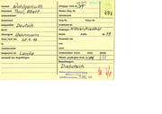 Zuname IN geprüft woeitzıiık B Kriegsgr. Liste Nr. 49 Vornamen _ Franz Sterbe-Reg.Nr. u 6 5 Geburtsdatum 7.9.03 Standesamt Geburtsort Sichredlow 7 PS. Sarg Nr. Feuer Nr. Nationalität at, Grabbrief Nr. | Be u i Grablage: Neuer Teil Diensigrag "perfeldwebel,Pi KP. | gezirk D Reife Nr. 15 Gest. / Gef. am 27.4.45 HAM B JExkupiert am u in Krankenhaus St.Georg von Todesursache nach 5 belgasetzt als Leic he j Grabzeichen: Ku Stele Platte Anschrift der Angehörigen Öffentl. gepflegtes Grab ja/ngixx N C ] Sehr: Neıka selWU Srepes Ahesked Bemerkungen: In der Grossen back Ma 5 Friedhof Fischbek Reherechisentschädigung | A OFT ic jährlich N 2 vom Bund enerkandt.2... APR. 1959