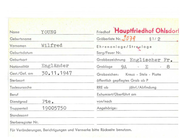 Name YOUNG Geburtsname Vornamen Friedhof 'Hauptfriedhof Ohlsdori Gräberliste Nr. ...' Wilfred 0 1'1 § 1I 2 Ehrenanlage/Str e_u lage Geburtsdatum Sarg/Feuer Nr. Geburtsort Grobbezeichnung Nationalität Engländer Grablage Gest./Gef. am 30 . 11 . 1947 Grabzeichen: ..... Englischer Fr . 9A E Kreuz - Stele - Platte Sterbeort öffentlich gepflegtes Grab ab P Todesursache RRE ab Beruf Exhumiert/Oberführt am Dienstgrad Fte . von/nach Truppentei I 19005750 Angehörige: jährl./Abfindung Standesamt Sterberegister Nr. Für Veränderungen, Berichtigungen und Vermerke bitte Rockseite benutzen. 8