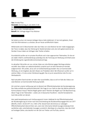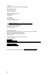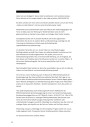 Von: Anneke Plass Gesendet: Donnerstag, 6. Juni 2019 17:14 An: Cc: Melanie Wenzl <Wenzl@mabb.de> Betreff: AW: Julia Klöckner haben Sie vielen Dank für Ihre Anfrage. Mittlerweile sind 13 Beschwerden über das Video bei der mabb eingegangen. Der Tenor ist dabei, dass hier Werbung für Nestlé betrieben wird, die nicht gekennzeichnet sei. Darüber hinaus haben wir Anfragen über Twitter erhalten. Grundsätzlich prüfen wir im privaten Rundfunk und in den sogenannten Telemedien, für die wir als mabb in Berlin und Brandenburg zuständig sind, die Trennung von Werbung und Inhalt sowie die Einhaltung des Jugendmedienschutzstaatsvertrags. Im aktuellen Fall prüfen wir nun, ob das Video von Julia Klöckner gegen Rechtsgrundsätze verstößt. Dazu haben wir selbstverständlich zunächst auch mit dem Ministerium Kontakt aufgenommen. Wir prüfen, ob es sich um Schleichwerbung handelt. Also um kommerzielle Werbung, um ein Angebot, das dem Absatz von Produkten dient. Bei Influencern prüfen wir in solchen Fällen z. B. ob es einen Werbevertrag gibt. Das ist ja ein wesentliches Indiz für eine Werbeabsicht. Nach aktuellem Stand würden wir aber eher ausschließen, dass es sich im Falle des Videos von Julia Klöckner um kommerzielle Werbung handelt. Wir sind hier unserer Auffassung nach im Bereich der Öffentlichkeitsarbeit der Bundesregierung. Das Video enthält eine politische Botschaft. Die Frage ist nun: Geht es über die übliche politische Kommunikation hinaus? Welche Regeln gelten dann? Reichen die Regeln aus? Die Beantwortung dieser Frage ist bei Telemedien – anders als im klassischen Rundfunk – deutlich komplizierter. Auch dies prüfen wir derzeit. Hier spielt beispielsweise auch Verfassungsrecht hinein: Maßstab für die Öffentlichkeitsarbeit der Bundesregierung ist immer noch eine Entscheidung des Bundesverfassungsgerichts von 1977 (BVerfG, Urteil v. 02.03.1977, Az. 2 BvE 1/76). Danach kann die Grenze zur zulässigen Öffentlichkeitsarbeit überschritten sein, wenn der informative Gehalt Aussage eindeutig hinter werblichen oder unterhaltenden Aussagen zurücktritt. Allerdings ist zu beachten, dass das Urteil auf analogen Zeiten, also deutlich vor der Zeit von Twitter und YouTube, stammt. Gleichzeitig und ganz unabhängig von den komplexen Fragen würden wir uns als mabb insgesamt mehr Transparenz bei der Erstellung solcher Videos wünschen. Ich hoffe, dass wir Ihnen mit unserer Antwort weiterhelfen können. Melden Sie sich gerne bei uns, wenn Sie weitere Fragen haben. Herzliche Grüße Anneke Plaß ______________________________________________ 101