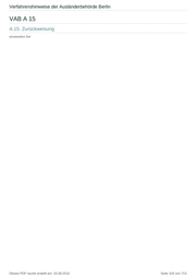 Verfahrenshinweise der Ausländerbehörde Berlin VAB A 15 A.15. Zurückweisung einstweilen frei Dieses PDF wurde erstellt am: 24.08.2015 Seite 104 von 713