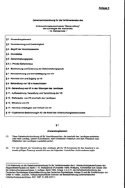 Anlage Il Geheimschutzordnung für die Verfahrensweise des Untersuchungsausschusses "Steuervollzug” des Landtages des Saarlandes - 12. Wahlperiode -' $ 1 - Anwendungsbereich 82 - Verantwortung und Zuständigkeit $ 3 - Begriff der Verschlusssache $ 4 - Grundsätze 8 5 - Geheimhaltungsgrade 85a -Private Geheimnisse $ 6 - Bestimmung und Änderung der Geheimhaltungsgrade 8 7 - Kennzeichnung und Vervielfältigung von VS & 8 - Kenntnis von und Zugang zu VS 8 9 - Behandlung von VS in Ausschüssen $ 10 - Behandlung von VS in den Sitzungen des Landtages & 11 - Aufbewahrung, Verwaltung und Vernichtung der VS & 12 - Weitergabe von VS innerhalb des Landtages $ 13 - Mitnahme von VS & 14 - Kenntnis Unbefugter und Verlust von VS 8 15 — Ergänzende Bestimmungen für die Arbeit des Untersuchungsausschusses 81 Anwendungsbereich (1) Diese Geheimschutzordnung gilt für Verschlusssachen, die innerhalb des Landtages entstehen oder dem Landtag, seinen Ausschüssen, dem Erweiterten Präsidium und dem Präsidium oder Mitgliedern des Landtages zugeleitet werden. (2) Für den Bereich der Verwaltung des Landtages gilt die VS-Anweisung für das Saarland in der jeweils gültigen Fassung, soweit sich aus den folgenden Vorschriften nichts anderes ergibt. 1) In Anlehnung an die Geheimschutzordnung für die Verfahrensweise des I. Untersuchungsausschusses des Abgeordnetenhauses von Berlin — 10. Wahlperiode (Fundstelle: Härth, Wolfgang, Kommentar zum Gesetz über die Untersuchungsausschüsse, 3. Auflage, Berlin 1989, Anlage 2 zu $ 7), die Geheimschutzordnung des Deutschen Bundestages (Geschäftsordnung des Deutschen Bundestages, Anlage 3) und die Empfehlungen von Vetter in: Vetter, Joachim, Verfassungsrechtliche Grenzen der Beweiserhebung parlamentarischer Untersuchungsausschüsse, DöV 1987, S. 426 (433 f.)