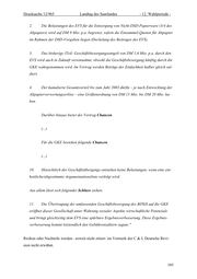 Drucksache 12/965 Landtag des Saarlandes - 12. Wahlperiode - 1,6 Mio., der bisher vom BDSiS an den KABV zum Ausgleich der Geschäftsbesorgungsauf- wendung bezahlt worden sei. In der Vorlage für die Sitzung vom 25.09.1997mitgeteilten Anregungen des Rechungsprü- fungsamtes seien bei der neuen Vorlage vollständig berücksichtigt. In der nun anstehenden Diskussion wird insbesondere die Frage nach dem Risiko des Ver- bandes gestellt und darüber hinaus, welche Einflussmöglichkeiten die Mitglieder des Verban- des auf die GKE hätten, zumal beim BDSiS die Haftung als solches verbliebe. Darüber hinaus wird auch die Frage aufgeworfen, welche Kosten auf den Verband bzw. BDSiS zukämen, bzw. wer für evt. Verluste aufkäme. Hierzu antwortet Herr Nospers, dass das ein wichtiger Punkt sei, dass der DSD-Vertrag nicht nur formell, sondern auch inhaltlich beim BDSiS verbliebe. (...) Der Gebührenzahler stünde sich in der Tat besser, wie in der Vorlage dargestellt. (...) Als Risiko verblieben die Papier- preise. Bei niedrigen Papierpreisen sei dies für die GKE schlecht, für den KABV würde sich nichts ändern, da im Geschäftsbesorgungsvertrag die Summe von 6,4 Mio. festgelegt worden ist. Bei steigenden Papierpreisen würde die GKE Gewinne erzielen. An diesen Gewinnen wür- den die Vertragspartner hälftig beteiligt sein, d.h. in diesem Fall, dass der KABV nochmals zugewinnen würden. Sofern die GKE Verluste ausweisen würde, können diese nur im Rahmen der Beschlüsse der Gesellschafterversammlung ausgeglichen werden. (...) Es folgt nun eine Diskussion über die Übertragung des Anlagevermögens. Sobald dies vollzogen sei, be- herrsche die GKE das Geschäft. Es wird auch darauf hingewiesen, dass mit Übernahme des Anlagevermögens durch die GKE der Einfluss des KABV bzw. des BDSiS sehr eingeschränkt wäre. Seitens des Verbandsvorstehers wird nochmals darauf hingewiesen, dass die derzeitige Ver- tragskonstruktion mit der GKE Bestand bis zum Jahr 2003 habe, und dann erfolge, wie be- reits schon erwähnt, eine neue Ausschreibung durch die DSD. (...) Es wird einstimmig Einvernehmen darüber erzielt, dass die Mitglieder des Verbands- und Werkausschusses einen gemeinsamen Beschluss fassen: Beschluss: 107