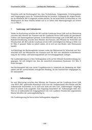 Drucksache 14/506 Landtag des Saarlandes - 14. Wahlperiode - Weiterhin stellt der Rechnungshof fest, dass Technikräume, Treppenläufe, Zwischenpodeste und Treppenaugen sowie die Teilunterkellerung bei korrekter Auslegung der obigen Richtli- nie als Mietfläche MF=0 eingestuft werden müssen, für die keine Miete zu berechnen ist. Die Mietersparnis für diese Flächen beläuft sich in 25 Jahren ohne Mietsteigerungen auf weitere ca. 2,1 Mio. €. 7. Sanierungs- und Umbaukosten Weder im Kaufvertrag zwischen der IKS und der Gondwana Invest GbR noch im Mietvertrag zwischen dem Minister der Finanzen und der Gondwana Invest GbR werden die geschätzten Umbau- und Sanierungskosten genannt. In der Ministerratsvorlage vom 23.08.2006 und in der Rahmenvereinbarung zwischen dem Minister der Finanzen, dem Minister für Wirtschaft und Wissenschaft, der IKS und der Gondwana Invest GbR wird lediglich ein Betrag in Höhe von 8,7 Mio. € genannt. Dabei ist jedoch unklar, ob es sich um eine Brutto- oder Nettosumme handelt. Auf Rückfrage des Rechnungshofes konnten weder das Ministerium für Wirtschaft und Wis- senschaft noch das Ministerium der Finanzen noch die IKS eine detaillierte Kostenberech- nung für die Umbau- und Sanierungsarbeiten am Verwaltungsgebäude vorlegen. Die Landesregierung ist in ihrer Stellungnahme nicht auf die fehlende Kostenberechnung ein- gegangen. Sie teilt lediglich mit, dass die tatsächlich entstandenen Baukosten 10,1 Mio. € brutto betragen. Der Rechnungshof hält eine solche Vorgehensweise in Anbetracht der Bedeutung der Maß- nahme und der weitreichenden vertraglichen Bindung, die das Saarland hier eingegangen ist, für inakzeptabel. 8. Außenanlagen Im zum Mietvertrag zwischen dem Minister der Finanzen und der Gondwana Invest GbR vom 08.01.2007 gehörenden Raumbuch wird zwar der Ausbauzustand aller Räume und der Außenfassade beschrieben; es ist auch eine Seite mit dem Titel „Außenanlagen“ beigefügt, diese ist jedoch nicht ausgefüllt. Eine Regelung hinsichtlich der Außenanlagen fehlt also. Hiervon ist insbesondere der Eingangsbereich der vom Landkreis Neunkirchen angemieteten Räume betroffen, der sanierungsbedürftig ist. Die Landesregierung hat hierzu keine Stellungnahme abgegeben. - 108 -
