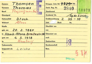 Zuname Thomsen Vorname Beruf ·r·~- ~ :Th12m «s___ ~:~~ Ft "'J 2 (. '/- tt-. II w Wohnort leti~ ~ Dtsc.h. Grabbezeichnung Alto "'c< Sekt. , z ~0 87 .Ag.Nr:534o4 35-10 Block Nr. . Oberführt am 20. 2. 18.8? von Hamh. - FIIfono. 8Fe-lfe-s-fr.ll~ gest. am ß.:; s. 19.18. f(..._, tu fu, ~"C. in Todesursache Bundesz:uschuß in in 2814--- Grabbrief Nr. Exhumiert am beigesetzt a ls f ,9l'!!J-'"'~ , Standesamt Straße geb. am Kriegsgr. Liste Nr! Sterb. Reg. Nr. Dienstgrad Nationalität . \1 Leiche nach De nkzeichen .. JO ~a Bem. - .. ".ejp r U#t §?ff 1