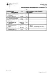• Bundesministerium der Finanzen VerfRiBeS-HKR Anlage 2 Satzbeschreibung der Anordnungsunterlagen zur Schnittstelle F15z -25- Feldnummer und Feldbezeichnung 20 Sunune der Auftragsaus- 21 22 23 24 25 zahhmgen Titelauszahhmgen Vorschussauszahhmgen Sunune sonstiger Aus- zahhmgen Sollbestand am Ab- schlusstag Kennzeichen positiv I negativ 26 Abrechmmgsmonat 27 Kennziffer der BFD XML L än ge / T yp <ZstAA> 13/N <ZstTA> 13/N <ZstVA> 13/N <ZstSA> 13/N <ZstSO Vz=x> 13/N Bedingungen für die Feldinhalte I Hinweise x = Feld 25 s. Feld 24 1/N <ZstAMM> 2/N <AOST> 4/N 0 = positiv 9 = negativ; (Kennzeichen zu Feld 24) Vers ion 3.5 Anhangseite 258 von 531