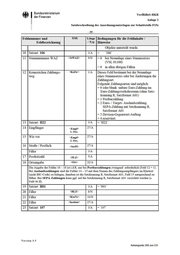 • Bundesministerium der Finanzen VerfRiBeS-HKR Anlage 2 Satzbeschreibung der Anordnungsunterlagen zur Schnittstelle F15z -36- Feldnummer und Feldbezeichnung 24 Betrag XML <Teilbetrag> L äng(' Bedingungen für die Feldinhalte I / T yp Hinweise ll/N Teilbetrag (Rate) I tumusmäßiger Gesamtbetrag I Rückfordenmgsbetrag (VSL 01240) = 0 nm bei W AZ-Stilllegungen und Ändemn- gen (Verarbeitungsschlüssel 0 12 00, 012 50, 0 13 00) >0 in allen übrigen Fällen Bei der Stilllegung mit der Rücknalune emes vom Titelverv.•alter bereclmeten überzahlten Betrages (VSL 01240) gilt das Vorgenannte analog fur den Rückfordenmgsbetrag. 25 abweichender erster Be- trag 26 abweichender letzter Betrag 27 Satzart 108 28 erster Zahltag 29 Kennzeichen Gutschrift auf Empfängerkonto <AbwEBe- trag> <AbwLBe- trag> <ZDatl> <KzGu> ll/N >0 ll/N =0 >0 3I A =0 = in allen anderen Fällen '108 ' 6/N >0 nm bei der Neuanlage eines Stammsatzes. Format: TTMMJJ. Zu diesem Termin wird die erste tumusmäßige Rate, oder ggf. der erste, abweichende Betrag ausgezahlt. 1/N = 0 in allen anderen Fällen = 0 Regelfall = 1 wenn die Zahlung zmn Fälligkeitsdatum =2 30 Turnus <ZTur nus> 2/N 31 letzte Zahlung <LZMon> 6/N nm bei Neuanlage emes Stammsatzes . In diesem Falle wird anstelle der Rate im Feld 24 dieser Betrag gezahlt. in allen anderen Fällen bei Neuanlage oder Ändenmg eines W AZ- Stammsatzes. In diesem Fall wird anstelle der Rate im Feld 24 dieser Betrag gezahlt. Soll ein bereits gespeichett er letzter Betrag gelöscht werden, so ist elfmal die 9 einzu- tragen auf dem Empfängerkonto gutgesclu·ieben werden soll wenn die Zahlung einen Tag vor dem Fäl- ligkeitsdatum auf dem Empfängerkonto gutgeschrieben werden soll >0 nm bei der Neuanlage eines Stammsatzes. Zeitlicher Abstand der einzelnen Zahlun- gen in Monaten. Mögliche Wett e sind: 01 , 02, 03, 04, 06 und 12. = 0 in allen anderen Fällen. Zu diesem Termin (Monat/Jahr) wird die letzte tumusmäßige Rate, oder ggf. der letzte, abwei- chende Betrag ausgezahlt. Bei unbefristeter Zah- lung ist hier sechsmal die 9 einzutragen. > 0 bei der Ersteinrichtung, bei einer Ände- nmg, wenn der Monat der letzten Zahlung geändett werden soll oder bei der Stillle- gung (VSL 0 1200 bzw. 01240) zm Festle- gung des letzten Auszahlungsmonats (auch flir n ickwirkende Stilllegung). = 0 in allen anderen Fällen (u.a. VSL 01250). Ver s io n 3.5 Anhangseite 269 von 531