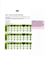 ANNEX 7 - INITIAL PLAN OF DEPLOYED RESOURCES The resources below reflects the planned average numbers of monthly deployments of HR and TE co- financed by Frontex. The actual Deployments Overview will be available upon request during implementation phase. The final list of resources deployed in the JO will be presented in Frontex Evaluation Report (FER). Human resource~ Commented [WU7]: The non-disclosed parts contain information regarding the number and profiles of officers deployed in the operational area . Disclosing such information Partlcfpatins MS: would be tantamount to disclosing the weaknesses and strengths of Frontex operations and pose a risk to their effectiveness. As a result, the course of ongoing and future -- Period: January - March 20 18 similar operations would be hampered, ultimately defeating ---------.i their purpose to counter and prevent cross·border crime and • I I unauthorized border crossings. Consequently, the disclosure of such information would undermine the protection of the public interest as regards public security as laid down Article 4(1)(a ) first Indent of Regulation (EC) 1049/2001 I I I I I I I I TOTAL I • -- - Period: April - October 2018 • I I I I I •• I I I I I I I I I I I I I I I I •• •• I I I • • • • I I I • I •• -- Period: November 2018 - January 2019 - • I I I I I I I I I I I • JS/60