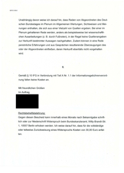 SEITE 3VON3 Unabhängigdavon weise ichdaraufhin,dass Reden von Abgeordnetendes Deut- schenBundestages im PlenumimAllgemeinen Wertungen, Sichtweisen undMei- nungen enthalten,diesichaus einerVielzahl von Quellenergeben. Bei einerim Plenum gehaltenenRede werden, anders alsbeispielsweise beiwissenschaftli- chen Ausarbeitungen (z. B.durchFußnoten), inder RegelkeineQuellenangaben zurHerkunftbestimmterAussagen nachgehalten. Zudem können in eineRede persönliche Erfahrungenund ausGesprächen resultierendeÜberzeugungen des oderderAbgeordneten einfließen,derenHerkunftebenfalls nichtvorgehalten wird. Gemäß $ 10 IFG inVerbindungmitTeilA Nr.1.1derInformationsgebührenverord- nung fallen keineKostenan. MitfreundlichenGrüßen Im Auftrag “““““““ Rechtsbehelfsbelehrung: Gegendiesen Bescheidkann innerhalb einesMonats nach Bekanntgabe schrift- lich oderzurNiederschrift Widerspruchbeim Bundeskanzleramt, Willy-Brandt-Str. 1,10557 Berlin erhobenwerden.Ichweisedaraufhin,dass fürdievollständige oder teilweiseZurückweisungeinesWiderspruchsKostenvon 30,00Euroanfal- len.
