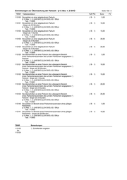 Einrichtungen zur Überwachung der Parkzeit - § 13 Abs. 1, 2 StVO Seite 102/ 0 TBNR Tatbestandstext FaP-Pkt Euro FV 113100 Sie parkten an einer abgelaufenen Parkuhr. ( B - 1) 5,00 § 13 Abs. 1, 2, § 49 StVO; § 24 StVG; 63.1 BKat Tab.: 713000 113101 Sie parkten an einer abgelaufenen Parkuhr ( B - 1) 10,00 - länger als 30 Minuten. § 13 Abs. 1, 2, § 49 StVO; § 24 StVG; 63.2 BKat Tab.: 713000 113102 Sie parkten an einer abgelaufenen Parkuhr ( B - 1) 15,00 - länger als 1 Stunde. § 13 Abs. 1, 2, § 49 StVO; § 24 StVG; 63.3 BKat Tab.: 713000 113103 Sie parkten an einer abgelaufenen Parkuhr ( B - 1) 20,00 - länger als 2 Stunden. § 13 Abs. 1, 2, § 49 StVO; § 24 StVG; 63.4 BKat Tab.: 713000 113104 Sie parkten an einer abgelaufenen Parkuhr ( B - 1) 25,00 - länger als 3 Stunden. § 13 Abs. 1, 2, § 49 StVO; § 24 StVG; 63.5 BKat Tab.: 713000 113120 Sie überschritten an einer Parkuhr die zulässige/im Bereich ( B - 1) 5,00 eines Parkscheinautomaten die auf dem Parkschein angegebene *) Parkzeit. § 13 Abs. 1, 2, § 49 StVO; § 24 StVG; 63.1 BKat Tab.: 713001 113121 Sie überschritten an einer Parkuhr die zulässige/im Bereich ( B - 1) 10,00 eines Parkscheinautomaten die auf dem Parkschein angegebene *) Parkzeit - länger als 30 Minuten. § 13 Abs. 1, 2, § 49 StVO; § 24 StVG; 63.2 BKat Tab.: 713001 113122 Sie überschritten an einer Parkuhr die zulässige/im Bereich ( B - 1) 15,00 eines Parkscheinautomaten die auf dem Parkschein angegebene *) Parkzeit - länger als 1 Stunde. § 13 Abs. 1, 2, § 49 StVO; § 24 StVG; 63.3 BKat Tab.: 713001 113123 Sie überschritten an einer Parkuhr die zulässige/im Bereich ( B - 1) 20,00 eines Parkscheinautomaten die auf dem Parkschein angegebene *) Parkzeit - länger als 2 Stunden. § 13 Abs. 1, 2, § 49 StVO; § 24 StVG; 63.4 BKat Tab.: 713001 113124 Sie überschritten an einer Parkuhr die zulässige/im Bereich ( B - 1) 25,00 eines Parkscheinautomaten die auf dem Parkschein angegebene *) Parkzeit - länger als 3 Stunden. § 13 Abs. 1, 2, § 49 StVO; § 24 StVG; 63.5 BKat Tab.: 713001 113140 Sie parkten im Bereich eines Parkscheinautomaten ohne gültigen ( B - 1) 5,00 Parkschein. § 13 Abs. 1, 2, § 49 StVO; § 24 StVG; 63.1 BKat Tab.: 713002 113141 Sie parkten im Bereich eines Parkscheinautomaten ohne gültigen ( B - 1) 10,00 Parkschein - länger als 30 Minuten. § 13 Abs. 1, 2, § 49 StVO; § 24 StVG; 63.2 BKat Tab.: 713002 TBNR Bemerkungen 113120 *) Zutreffendes angeben bis 113124